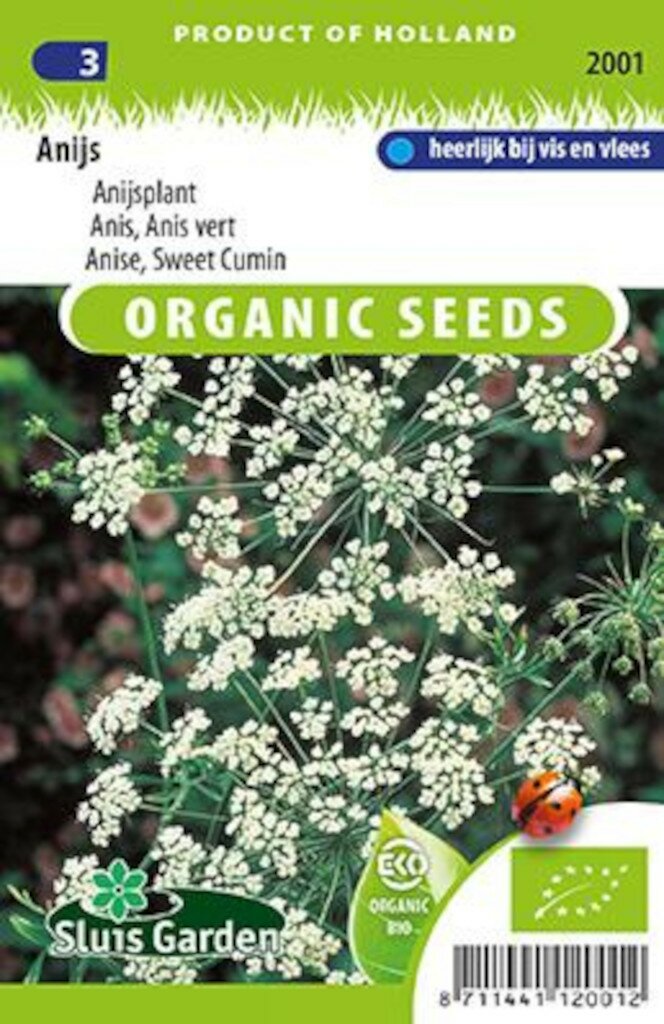 Anijs zaden Anijsplant BIO: Aromatische kruiden voor je tuin. Anijs zaden Anijsplant BIO van Sluis Garden is een heerlijk geurend kruid dat niet mag ontbreken in je kruidentuin. Deze biologisch geteelde zaden leveren een plant op met een zoete, karakteristieke geur en smaak die al eeuwenlang wordt gewaardeerd in de keuken. Met ongeveer 300 zaden per verpakking heb je ruim voldoende om een mooie oogst te realiseren en te genieten van de veelzijdige toepassingen die anijs te bieden heeft.
