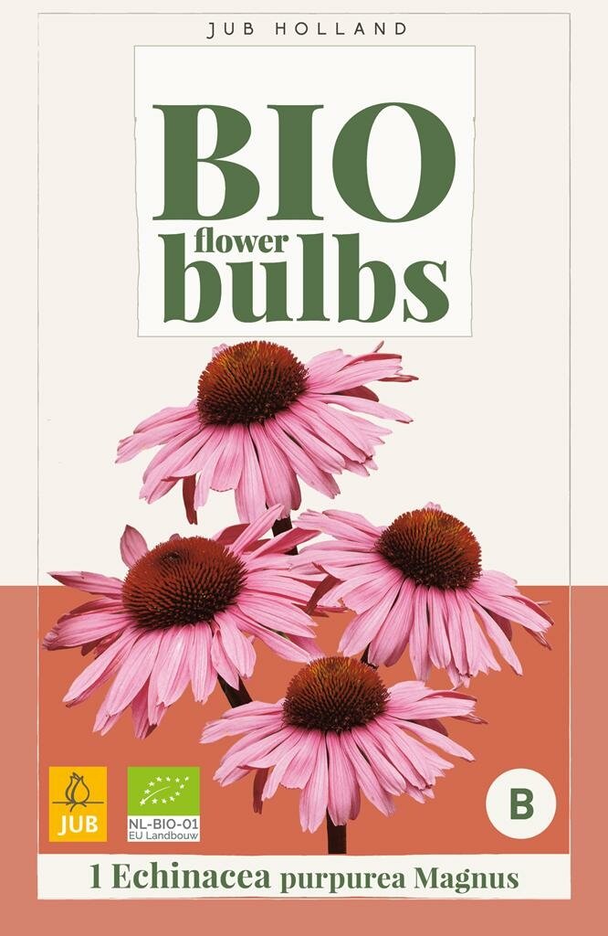 Bio Echinacea Purpurea Magnus: Biologische zonnehoed voor je tuin. Bio echinacea purpurea magnus is een prachtige biologisch geteelde vaste plant die bekend staat om zijn opvallende roze bloemen. Deze zonnehoed van het kwaliteitsmerk Jub groeit uit tot een stevige tuinplant van ongeveer 80 cm hoog en bloeit uitbundig van juni tot en met september. De biologische teeltwijze maakt deze plant een milieuvriendelijke keuze voor je tuin.