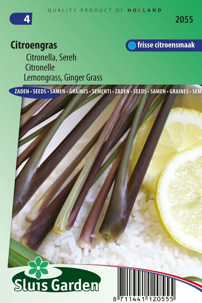 Citroengras Sereh zaden Citronella: Exotische smaakmaker voor je tuin. Citroengras Sereh zaden Citronella is een tropische grassoort met een heerlijke citroengeur en -smaak die je eenvoudig zelf kunt kweken. Dit populaire kruid van Sluis Garden vormt de basis van talloze Aziatische gerechten en is bekend om zijn verfrissende aroma. Met ongeveer 400 zaden per verpakking heb je ruim voldoende om deze smaakmaker in je eigen tuin of op je balkon te laten groeien.