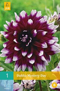 - De Dahlia Mystery day heeft een zeer mooie grote bloem, met rood- paarse bladeren met op het eind witte puntjes. Deze dahlia kan maar liefst 80 cm worden.