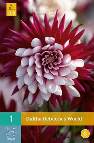 De cactus dahlia Rebeccas world heeft een grootte bloem. De spitse blaadjes zijn het kenmerk van de cactus dahlia. Door de grote bloem met spitse blaadjes valt deze dahlia altijd op. De cactus dahlia Rebeccas world word gemiddeld een meter hoog.