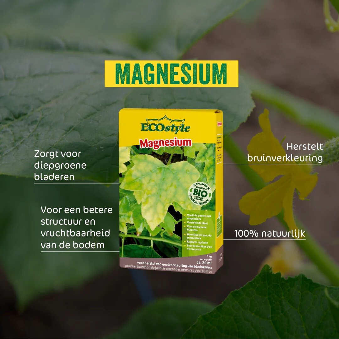 Wil je bruine bladeren voorkomen en je planten een gezonde, diepgroene kleur geven? Bestel dan nu ECOstyle Magnesium 1 kg online of bezoek een van onze tuincentra voor persoonlijk advies. Onze medewerkers helpen je graag bij het maken van de juiste keuze voor jouw specifieke tuinsituatie. Met deze organische meststof geef je je tuin precies wat nodig is voor een weelderige groei en prachtige uitstraling. Bekijk ook onze vestigingen voor openingstijden en locaties bij jou in de buurt.