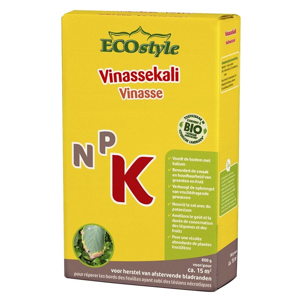 ECOstyle Vinassekali (K) is een 100% natuurlijke meststof die speciaal ontwikkeld is om kaliumtekorten in de bodem snel aan te vullen. Deze hoogwaardige meststof van ECOstyle is ideaal voor toepassing in de moestuin, siertuin en bij fruitgewassen. Ook bloembollen profiteren optimaal van deze kaliumrijke voeding die zorgt voor sterkere planten en een betere oogst.