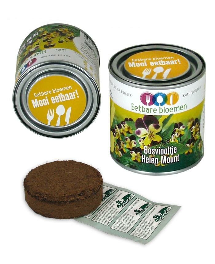 Eetbare bloemen in blik Bosviooltje Helen Mount: