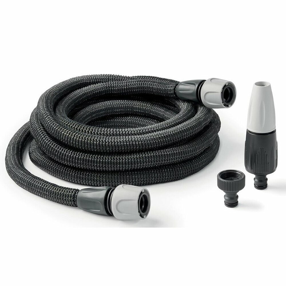 De slang is bijzonder geschikt voor kleinere tuinen, balkons en terrassen waar opslagruimte beperkt is. Na gebruik neemt de slang minimale ruimte in beslag, wat hem ideaal maakt voor stadsbewoners of mensen met beperkte bergruimte. De meegeleverde spuit biedt verschillende sproeipatronen, zodat je altijd de juiste waterstraal hebt voor elke klus.