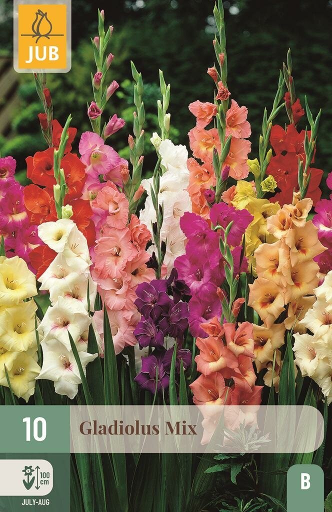 Gladiolen mix: Kleurrijke zomerbloeiers voor je tuin. De Gladiolen mix van het merk Jub is een prachtige verzameling zomerbloeiers die je tuin transformeert in een kleurrijk spektakel. Deze mix bevat 10 bollen in verschillende kleuren die uitgroeien tot imposante bloemen op stevige stengels van ongeveer één meter hoog. Gladiolen zijn niet alleen schitterend in de tuin, maar ook perfect voor zomerse boeketten binnenshuis.