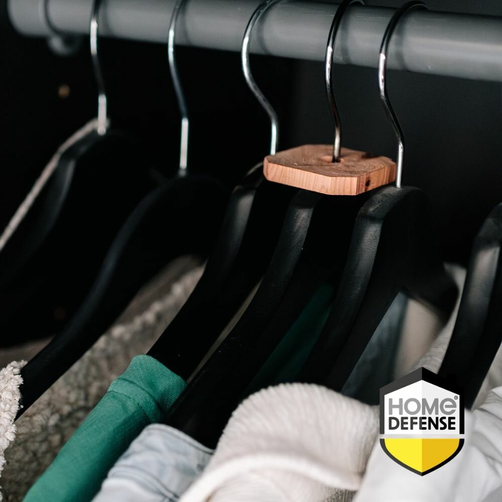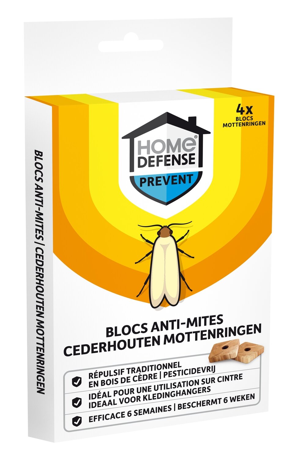 Home defense mottenring cederhout 4 stuks. Home defense mottenring cederhout 4 stuks is een effectieve en natuurlijke oplossing tegen kledingmotten. Deze traditionele cederhouten ringen bevatten essentiële oliën die een frisse geur verspreiden die motten op afstand houdt. De geur camoufleert de aantrekkelijke geur van kleding en keratine vezels, waardoor motten je kledingkast zullen vermijden. Dankzij de handige centrale opening zijn de ringen perfect te gebruiken op kledinghangers.