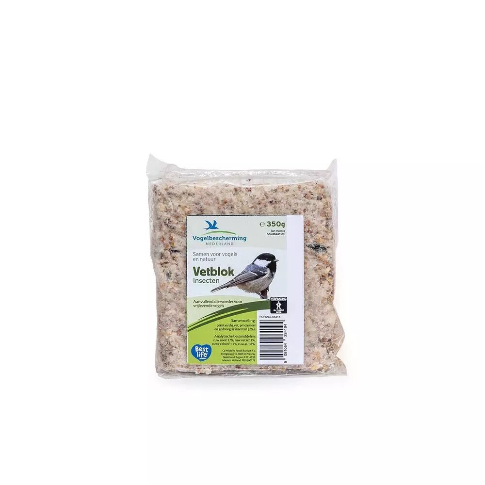 Insectenvetblok van Vogelbescherming is een energierijke voedingsbron speciaal ontwikkeld voor tuinvogels. Dit vetblok zit boordevol essentiële oliën en vetten die vogels de nodige energie geven, vooral tijdens de koudere maanden. De toevoeging van gedroogde insecten en energierijke zaden maakt dit een aantrekkelijke lekkernij voor verschillende vogelsoorten die je tuin bezoeken.
