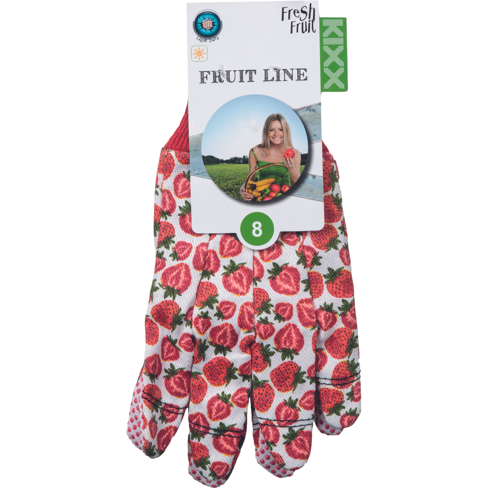 Kixx handschoen fresh fruit is gemaakt van gebreid katoen met PVC dots voor een goede grip. Deze handschoenen zijn geschikt voor lichte werkzaamheden. De Kixx handschoen fresh fruit is er in maat 8. De handschoenen zijn onder andere geschikt om te bloemschikken, planten te verpotten, stekken, onkruid wieden, en te schoffelen.