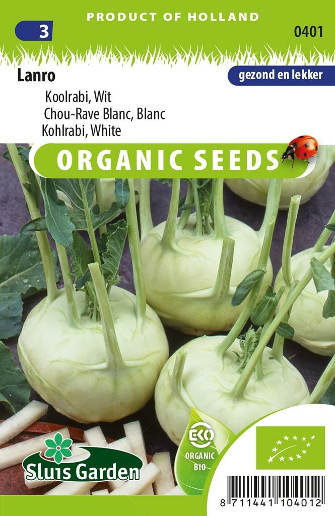 Biologische Koolrabi Lanro: Smaakvolle knol voor je moestuin. Koolrabi zaden Lanro BIO zijn biologisch geteelde zaden van het merk Sluis Garden. Deze heerlijke groente vormt een bovengrondse knol die zowel gekookt als rauw een ware delicatesse is. Gekookt heeft koolrabi een smaak die doet denken aan bloemkool, terwijl de rauwe knol meer naar selderij smaakt. De biologische teeltwijze garandeert dat je een puur natuurlijk product in je tuin kweekt.