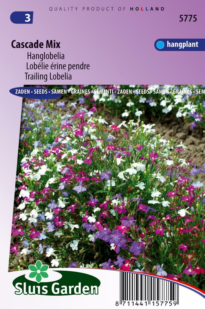 Lobelia Erinus Pendula Cascade Mix: Kleurrijke hangende bloemen voor jouw tuin. Lobelia Erinus Pendula Cascade Mix is een rijkbloeiende, snel groeiende plant met fris groen blad van het merk Sluis Garden. Deze mix zorgt voor een weelderige cascade van kleine, vrolijke bloempjes in verschillende kleuren die prachtig naar beneden hangen. De Cascade Mix is ideaal voor het opfleuren van balkonbakken, containers, hanging baskets en potten, waar de plant zijn hangende groeiwijze optimaal kan tonen.