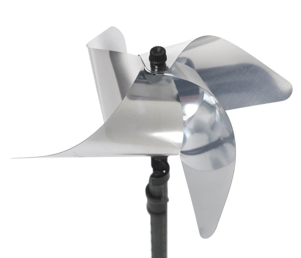 Het installeren van de Nature vogelschrikmolen is eenvoudig. Bevestig het meegeleverde koppelstuk aan een stok (niet inbegrepen) en plaats deze op strategische plekken in je tuin of bij je vijver. Voor optimale resultaten kun je de molen het beste plaatsen op een plek waar veel wind staat en waar zonlicht goed kan reflecteren. De draaiende beweging en de lichtreflecties zorgen ervoor dat vogels worden afgeschrikt en je gewassen of vijvervissen met rust laten. Voor grotere tuinen is het aan te raden meerdere molens te plaatsen.