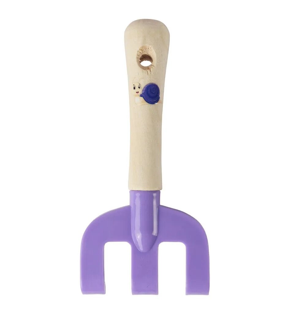Je kinderen laat je op een speelse manier kennismaken met de werkzaamheden in de tuin met behulp van dit handharkje van Talen Tools. Voorzien van een vrolijke slak en een frisse paarse kleur, zodat jou kinderen staan te popelen om aan de slag te gaan. Het handharkje is voorzien van 3 kunststof tanden. Daardoor is het harkje geschikt om het hele jaar door te gebruiken. Die paarse kleur geeft ook een extra laagje bescherming, zodat het handharkje minder snel slijt als jouw kinderen aan de slag gaan in de zandbak of in bloemenperkjes. Het sterke hout is voorzien van een gat. Dat gat gebruik je om het handharkje veilig op te hangen. Het handvat bestaat uit hout met een FSC 100% keurmerk. Zo weet je dat het hout afkomstig is uit bossen met een verantwoord bosbeheer.