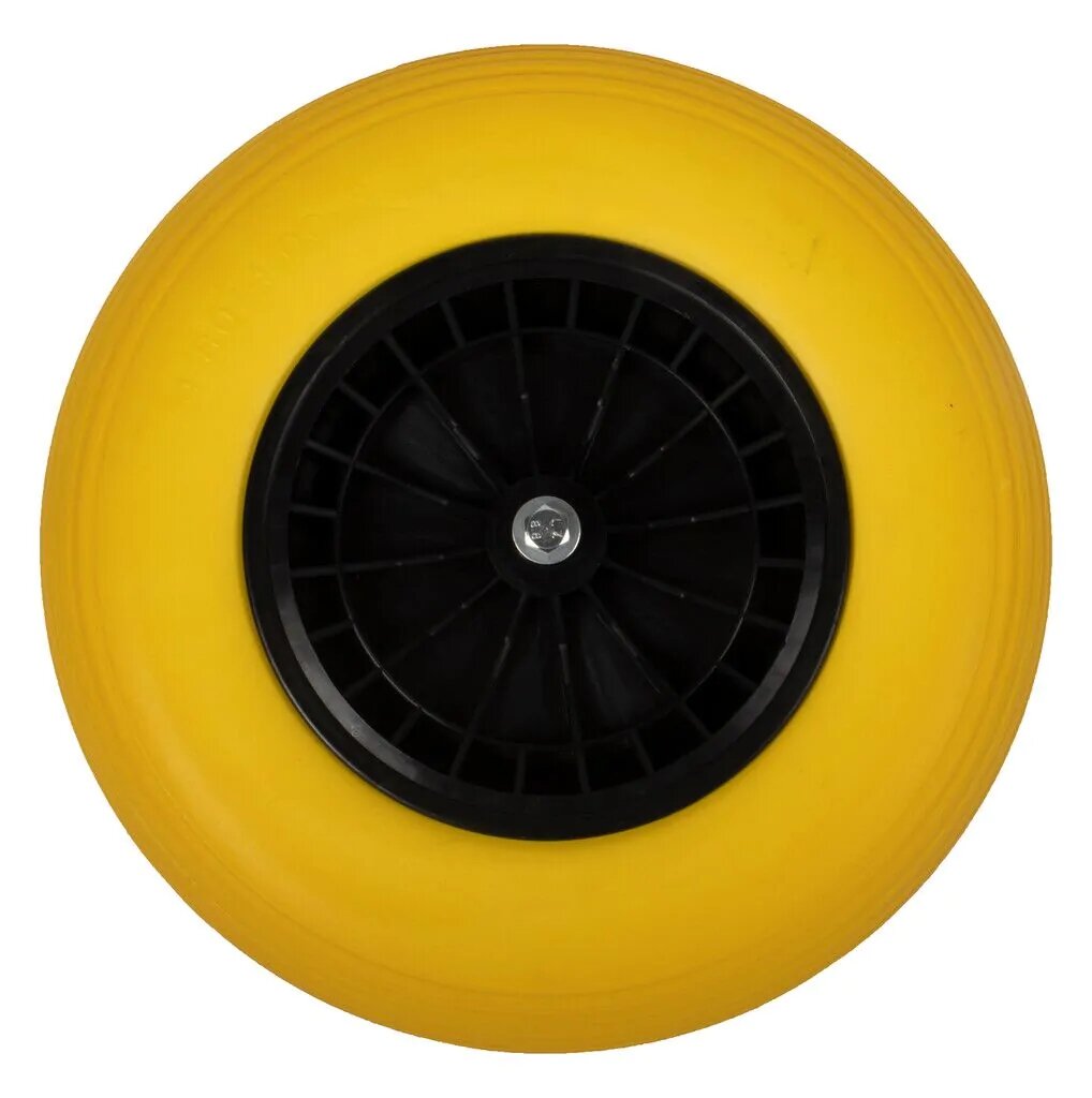 Met deze kruiwagenband hoeft u zich geen zorgen te maken over de bandenspanning. U hoeft dit wiel nauwelijks te onderhouden. Bijvullen is niet nodig. Omdat er een licht reliëf op de band zit, rijdt de kruiwagenband goed op verschillende terreinen. Daardoor ervaart u meer grip en kunt u gemakkelijker sturen. Toch is het nooit aan te raden om met een zwaar beladen kruiwagen op natte, drassige grond te werken. Maak het uzelf niet te moeilijk en gebruik de kruiwagen vooral op een droge ondergrond.