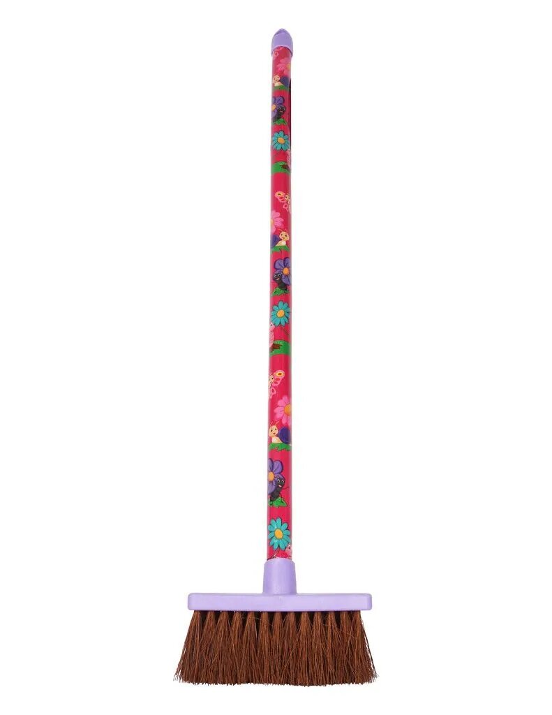 Hoewel een bezem in eerste instantie functioneel is en kan zorgen voor een schoon tuinpad of een schone vloer, is het voor de toegankelijkheid ook belangrijk dat deze beschikt over een leuk ontwerp. Met een gekleurde animatie in combinatie met een paarse kleur, spreekt deze bezem jonge kinderen aan. Op de steel zie je een samenspel van mieren, vlinders en slakken. Gecombineerd met kleurrijke bloemen, valt dit model direct op.