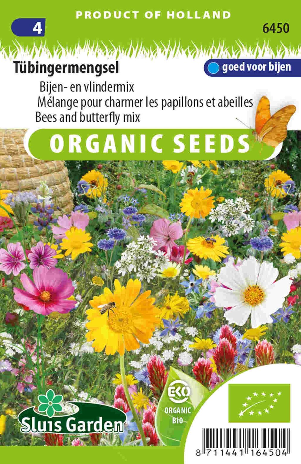 Biologisch Tübingermengsel Bijen-vlindermix voor een bloeiende tuin. Ontdek het Tübingermengsel Bijen-vlindermix BIO van Sluis Garden, een zorgvuldig samengestelde biologische zadenmix die speciaal ontwikkeld is om bijen en vlinders naar je tuin te lokken. Deze EKO-gecertificeerde zadenmix bevat een kleurrijke selectie van bloemen die niet alleen je tuin opfleuren, maar ook een belangrijke bijdrage leveren aan de biodiversiteit en het behoud van bestuivende insecten. Met één verpakking kun je ongeveer 7 m² aan bloemenweide creëren.