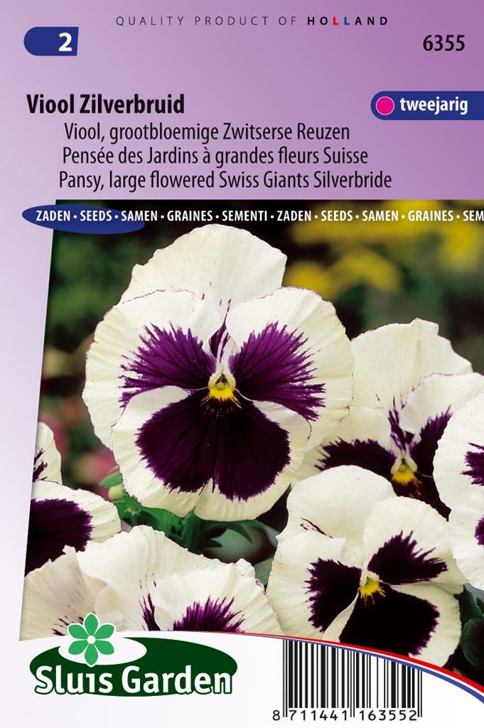 Zilverbruid Viooltje: Een Elegante toevoeging aan je tuin. Viola Wittrockiana zaden Zilverbruid viooltje van Sluis Garden is een prachtige grootbloemige viool met een uniek kleurenpalet. De bloemen zijn zilverwit met opvallende paarsblauwe vlekken, waarbij het wit later geleidelijk naar blauw verkleurt. Dit zorgt voor een fascinerend kleurenspel in je tuin of plantenbakken. De eetbare bloemen maken dit viooltje niet alleen een lust voor het oog, maar ook een culinaire aanvulling voor je keuken.