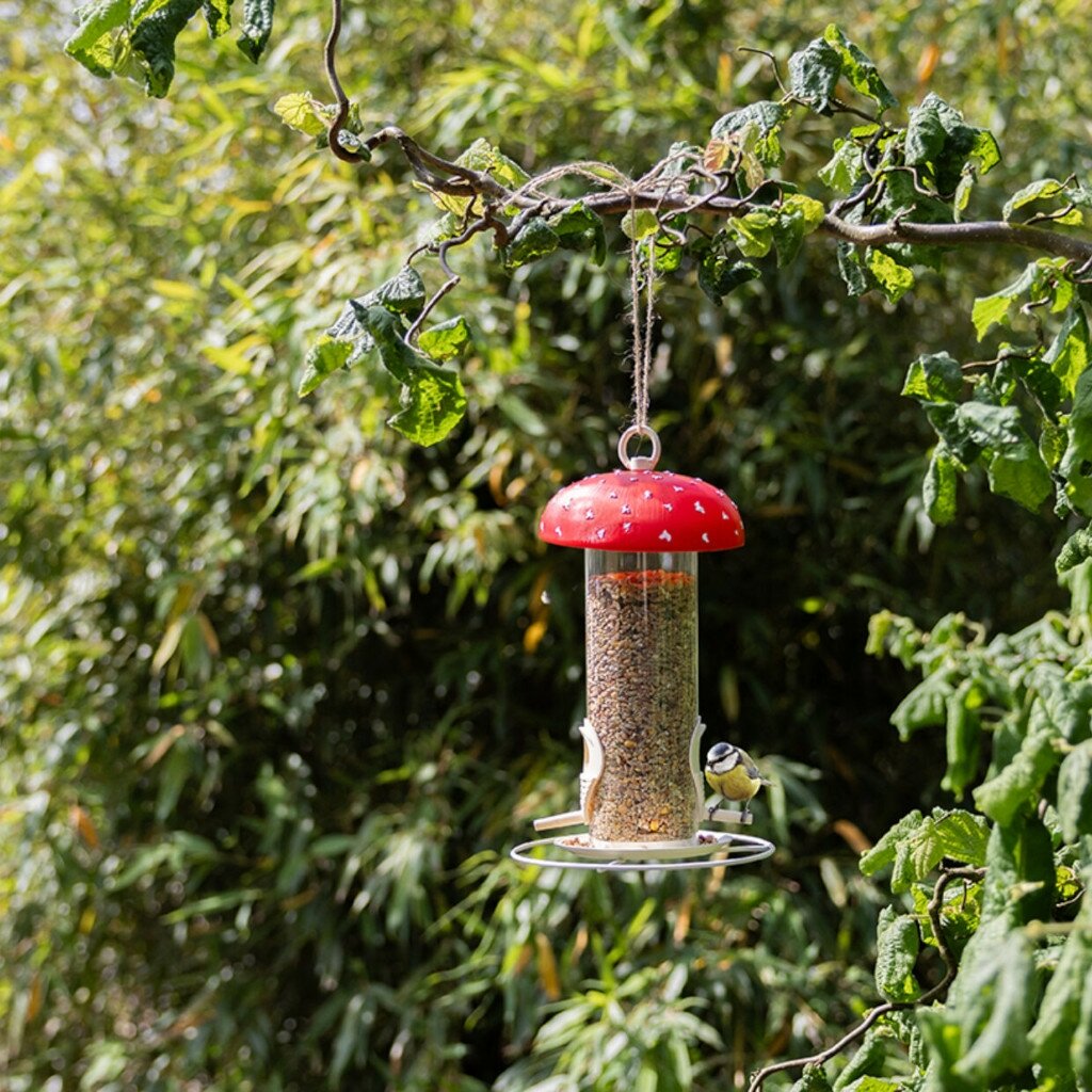Plaats de voedersilo vliegenzwam op een rustige plek in je tuin waar je de vogels goed kunt observeren. Vul de silo met geschikt vogelvoer zoals zonnebloempitten, gemengd vogelzaad of vetbollen. De silo is het hele jaar door te gebruiken, maar is vooral waardevol in de wintermaanden wanneer vogels extra voeding nodig hebben. Het is aan te raden de voedersilo regelmatig schoon te maken om schimmelvorming te voorkomen. Dankzij het afneembare deksel is dit eenvoudig te doen. Hang de silo bij voorkeur op een plek waar katten er niet bij kunnen, zodat de vogels veilig kunnen eten.